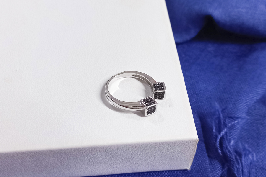 ANEL BANHADO EM RÓDIO BRANCO, SOLITÁRIO QUADRADO 6mm
