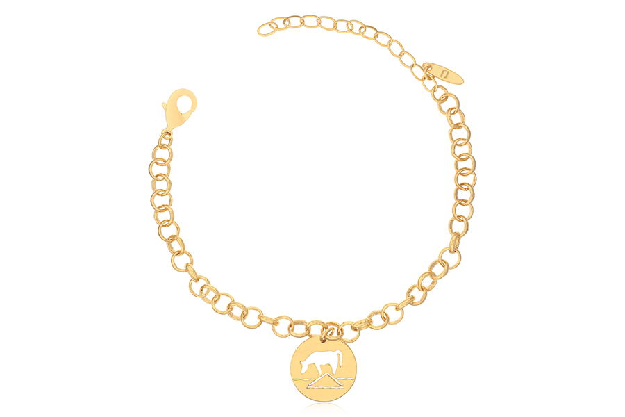 PULSEIRA BANHADA EM OURO, ELO PORTUGUÊS 3mm, ELO CORAÇÃO 4,20mm LARGURA, PINGENTE CORAÇÃO 11mm LARGURA COM MENINO