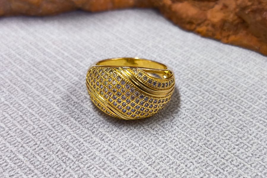 ANEL BANHADO EM OURO 7mm LARGURA E 7 FILEIRAS DE ZIRCÔNIAS