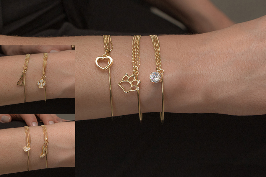 PULSEIRA BANHADA EM OURO, ELO PORTUGUÊS 3mm, ELO CORAÇÃO 4,20mm LARGURA, PINGENTE CORAÇÃO 11mm LARGURA COM MENINO