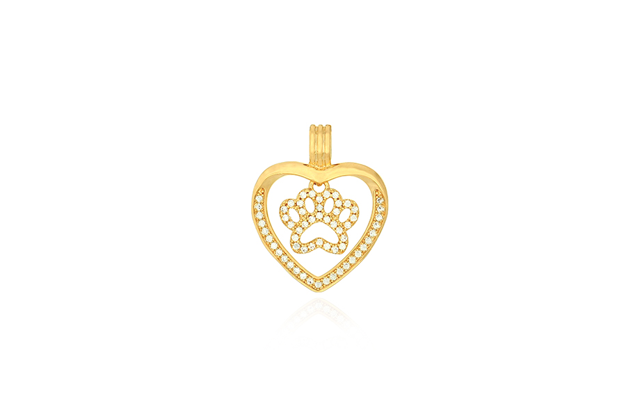 PINGENTE BANHADO EM OURO CORAÇÃO E PATA 19mm LARGURA