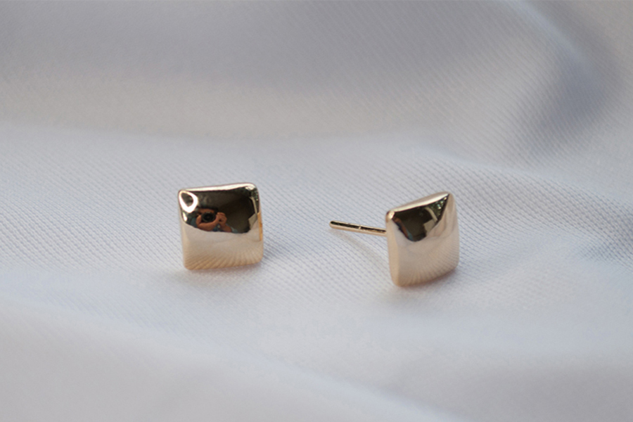 BRINCO BANHADO EM OURO, QUADRADO 8mm