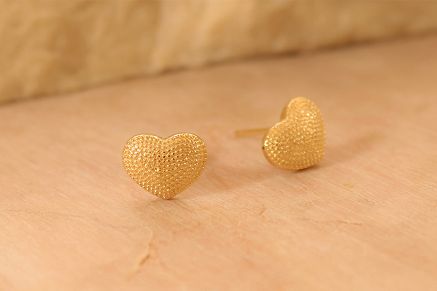 BRINCO BANHADO EM OURO, CORAÇÃO 4mm LARGURA, PARA QUALQUER COR DE PEDRA