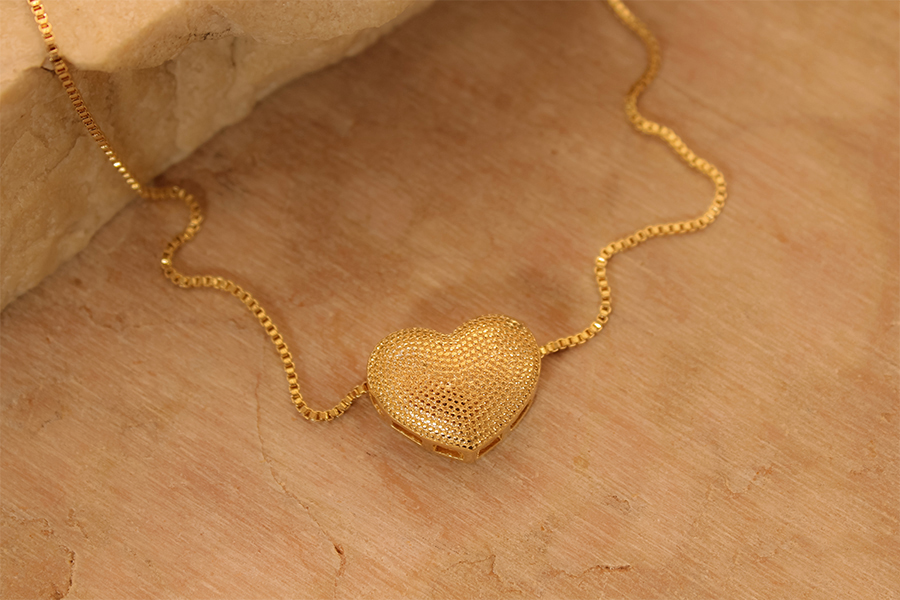 GARGANTILHA BANHADA EM OURO, ELO 1,20mm LARGURA, 40cm COMPRIMENTO, EXTENSOR 10cm COMPRIMENTO E CORAÇÃO 7mm LARGURA, PARA QUALQUER COR