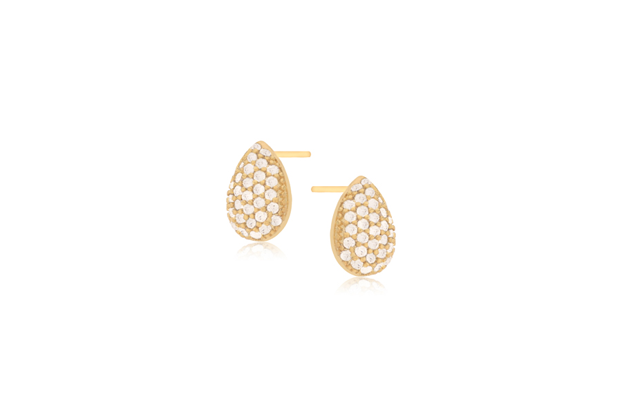 BRINCO BANHADO EM OURO, CORAÇÃO ZIRCÔNIA 6X6mm, PARA QUALQUER COR DE PEDRA