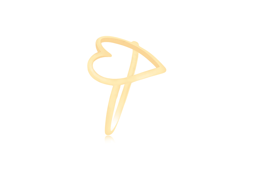 ANEL BANHADO EM OURO CORAÇÃO 15mm ALTURA