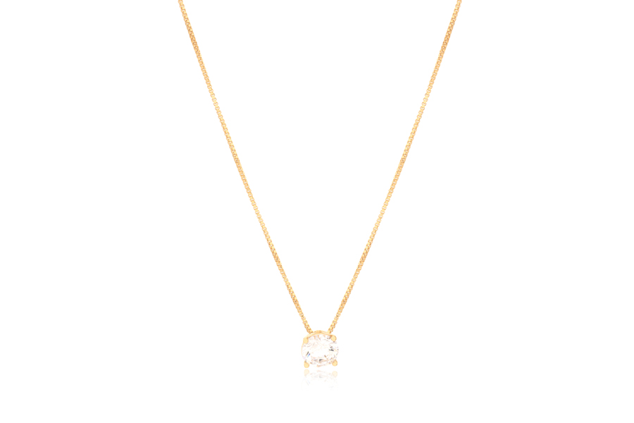 GARGANTILHA BANHADA EM OURO, CRISTAL REDONDO 8mm, VENEZIANA 0,80mm, 40cm COMPRIMENTO E EXTENSOR 5cm COMPRIMENTO