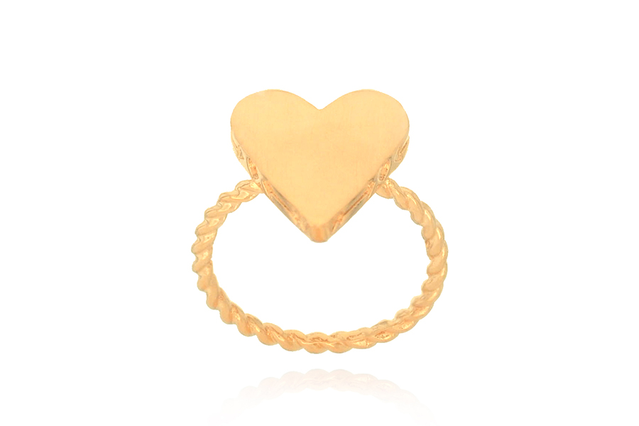 ANEL BANHADO EM OURO CORAÇÃO 15mm ALTURA