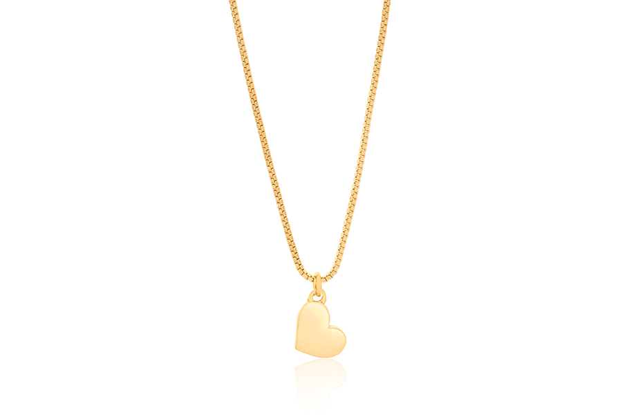 GARGANTILHA BANHADA EM OURO, ELO 1,20mm LARGURA, 40cm COMPRIMENTO, EXTENSOR 10cm COMPRIMENTO E CORAÇÃO 7mm LARGURA, PARA QUALQUER COR