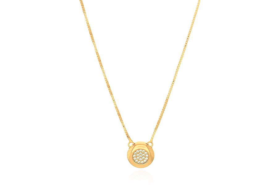 GARGANTILHA BANHADA EM OURO, CRISTAL REDONDO 8mm, VENEZIANA 0,80mm, 40cm COMPRIMENTO E EXTENSOR 5cm COMPRIMENTO