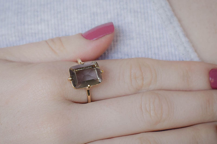 ANEL BANHADO EM RÓDIO BRANCO, SOLITÁRIO QUADRADO 6mm