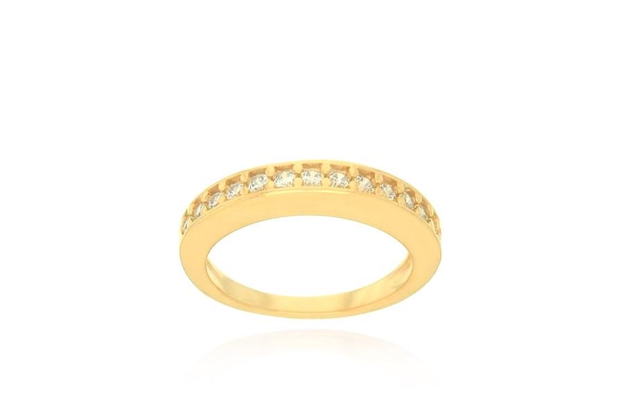 ANEL BANHADO EM OURO 7mm LARGURA E 7 FILEIRAS DE ZIRCÔNIAS